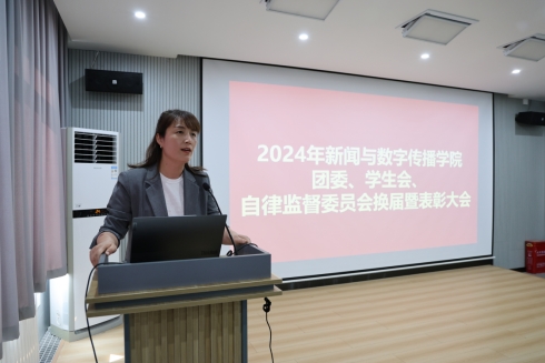 尚青青为 22 级优秀员工干部颁发奖状,充分肯定了过去一年里员工会成员齐心协力为丰富同学们校园生活、营造良好学习氛围所做出的努力,勉励新一届员工会要继续保持和发扬优良传统,不断打牢工作基础,增强软实力。