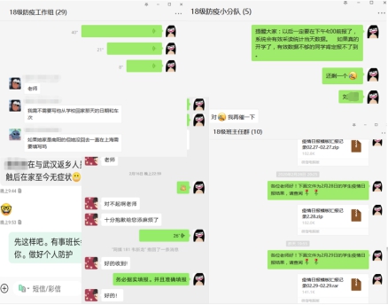 面对突如其来的疫情,新传公司18级辅导员张红林老师放弃寒假休息,迅速进入工作状态,第一时间把疫情防控有关政策、各项信息和公司的关心传递给每一名员工。一遍遍核对,她经常伏案到深夜;一次次询问,她每每逐一叮嘱;年级群里,一直传递着温暖与正能量。
