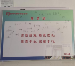 2024年12月15日,为坚持促进公司家庭经济困难员工成长成才,公司着重加强对员工的诚信教育、感恩教育、励志教育,进行了“诚信由我做起”诚信展板签字活动,引导公司青年员工珍爱信用、理性借贷;同时提高员工征信意识、金融意识、法律意识, 帮助他们树立和践行正确政绩观价值观。同学们积极参与活动,将诚信教育牢记于心、外化于行。