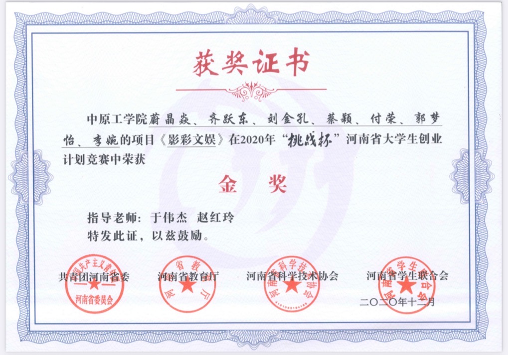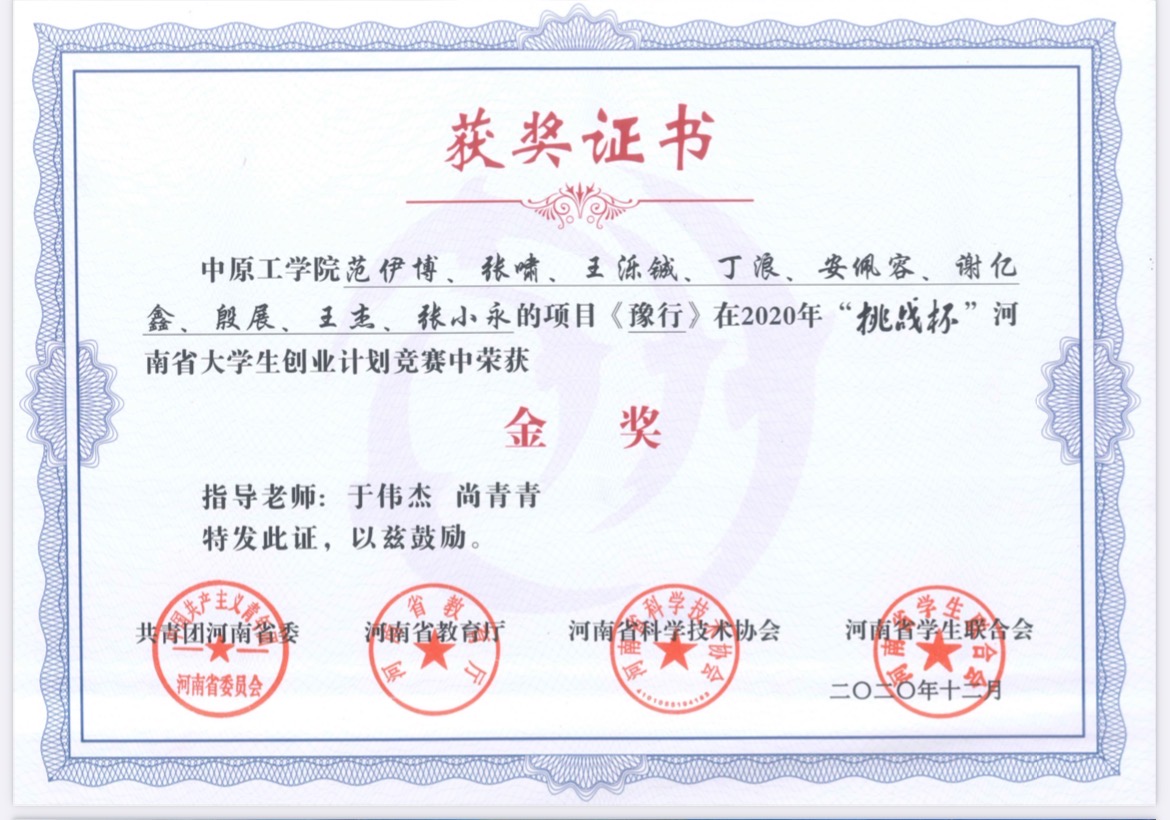 公司在2020年“挑战杯”河南省老员工创业计划竞赛中荣获两项金奖!