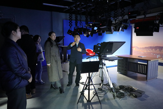 杨静一行受到了新密市融媒体中心主任王晓磊及相关领导的热情接待,在王晓磊的陪同下参观了新媒体中心电视直播间、电台直播间及相关部门科室的办公环境。