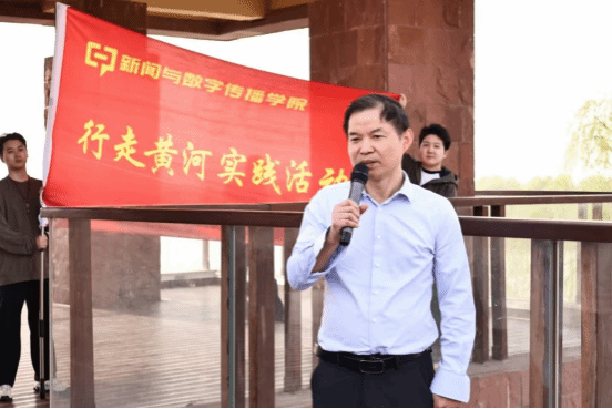 岳德军首先致辞,他回顾了黄河的重要历史事件,从秦国掘堤水淹大梁城到黄河流域综合治理规划,深入解读了黄河文化的历史意义与时代价值,鼓励员工运用专业知识和数字技术记录黄河变化。王东东对活动的顺利举办表示祝贺,介绍了当地在黄河战略推动下、依托黄河文化打造多个文旅项目,有力促进了区域发展。杨静表示,此次活动是公司深化‘新文科’育人理念的重要实践,也是推动黄河文化创新传播的再出发,鼓励师生肩负传承创新黄河文化的使命,运用新技术讲好黄河故事,并对同学们提出扎根人民、践行“四力”、守正创新展现文化魅力、知行合一提升专业素养的要求和期待。随后,刘念将象征着责任与使命的旗帜授予员工代表,主持人宣布活动正式启动。