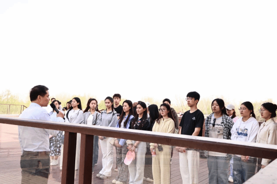活动中,师生一行先后前往南裹头广场、花园口将军像、将军坝、引黄闸及镇河铁犀等处。黄河研究专家岳德军结合地理遗迹与文献资料,梳理了黄河沿岸的人文脉络与工程壮举,令在场师生深切感受到黄河文化的厚重底蕴。在南裹头,结合黄河生态治理和保护工程,讲解了黄河治理的科技智慧;在花园口,通过讲述抗战时期“花园口决堤”事件,剖析了黄河承载的民族记忆与精神力量。同学们通过影像记录、现场采访、文化速写等方式,多角度挖掘黄河故事。2023级张同学感慨:“站在黄河边听讲解,那些书本上的文字瞬间鲜活起来,更深刻理解了何为‘一部黄河史,半部中国史’。”