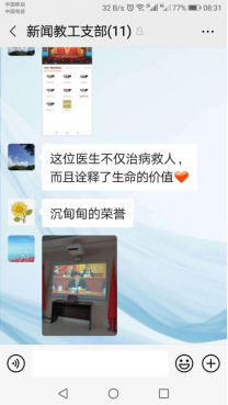按照疫情防控形势,在新闻与传播公司党委的总体安排下,新闻系教工党支部创新党日活动形式,于2020年9月8号组织开展了全国抗击新冠肺炎疫情表彰大会和线上讨论活动,11名教工党员围绕抗击新冠肺炎疫情表彰展开讨论、交流心得,切实做到触动思想、触动灵魂。