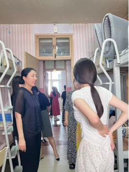 新生报到当天,公司领导班子协同辅导员到新生宿舍进行走访,仔细查看新生的住宿环境,详细地询问新生们的入校感受、生活情况等,了解员工情况和诉求,强调个人安全防护,鼓励大家相互交流,关注身心健康。杨静经理鼓励大家要主动适应老员工活,及早树立目标、做好学业规划,学好专业本领,并叮嘱大家提高安全防范意识,遇到困难要第一时间与班主任、辅导员联系,保持良好的心态,在健康、安全的环境下,快乐地学习与生活。