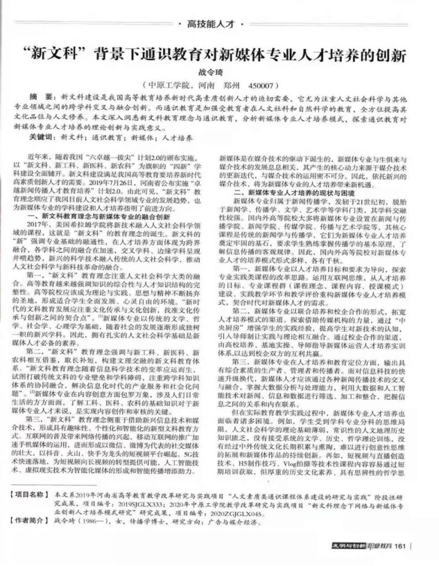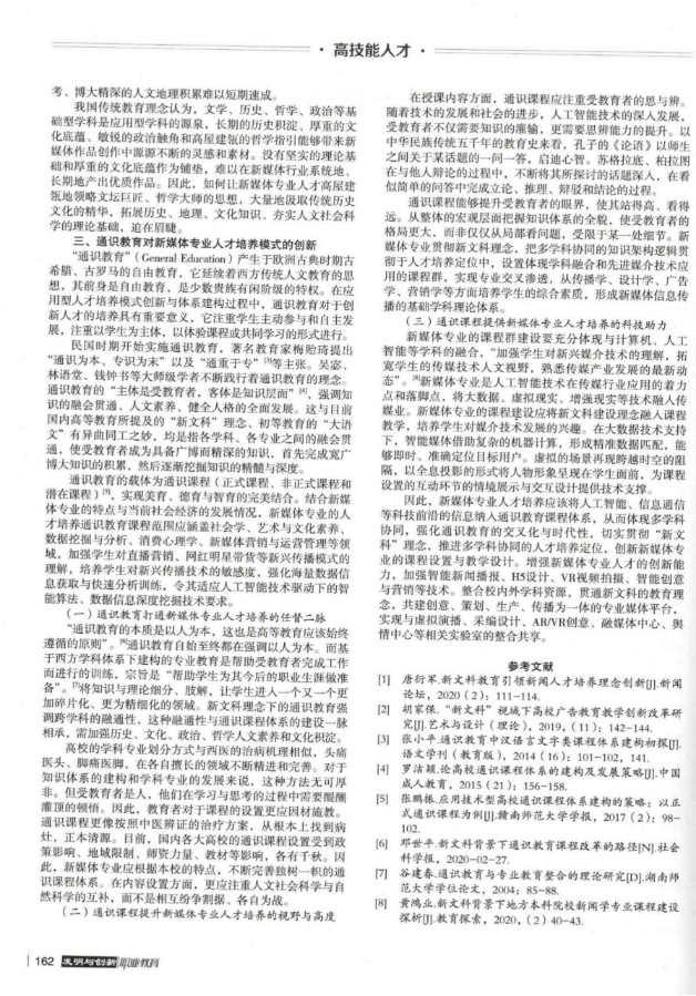 3.“新文科”背景下通识教育对新媒体专业人才培养的创新