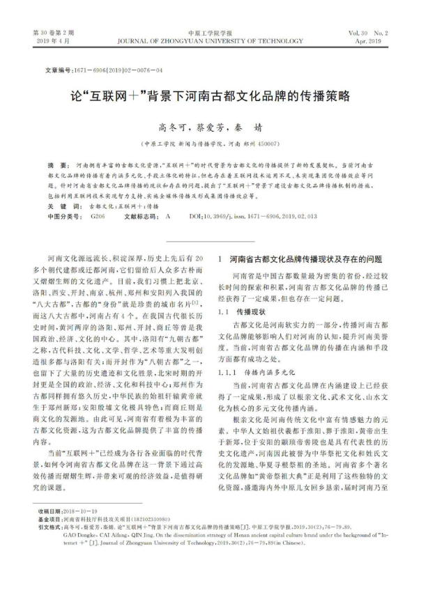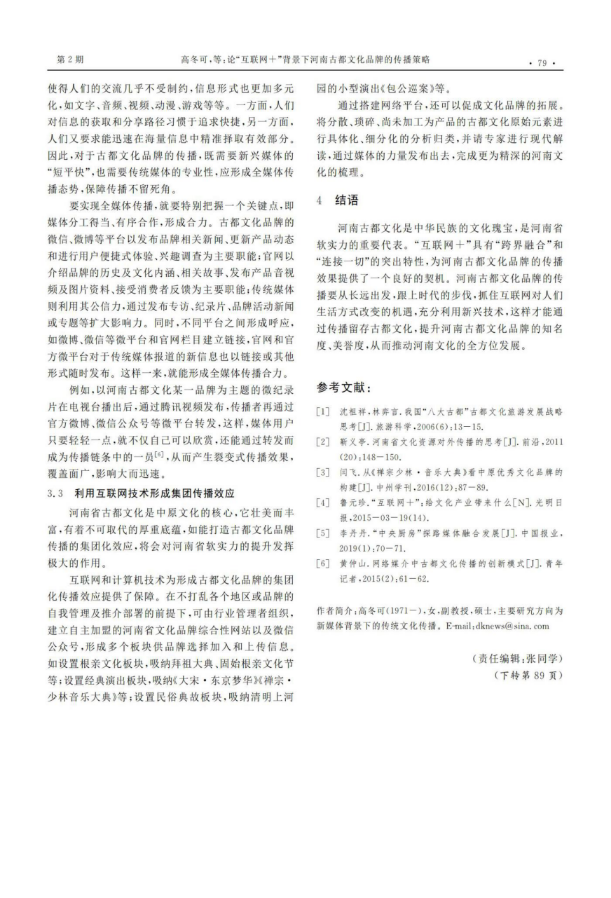 7.论“互联网+”背景下河南古都文化品牌的传播策略
