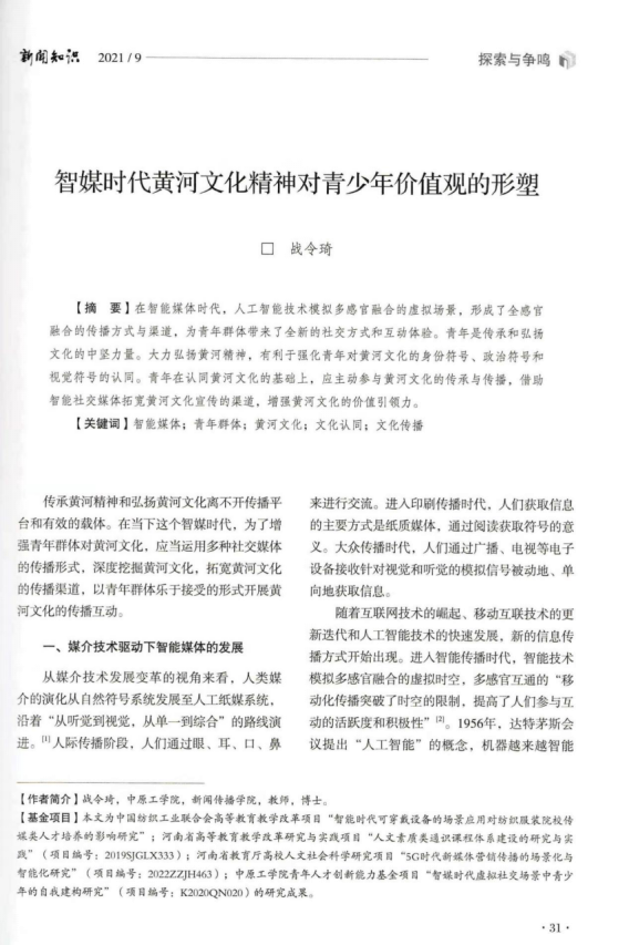 9.智媒时代黄河文化精神对青少年价值观的形塑