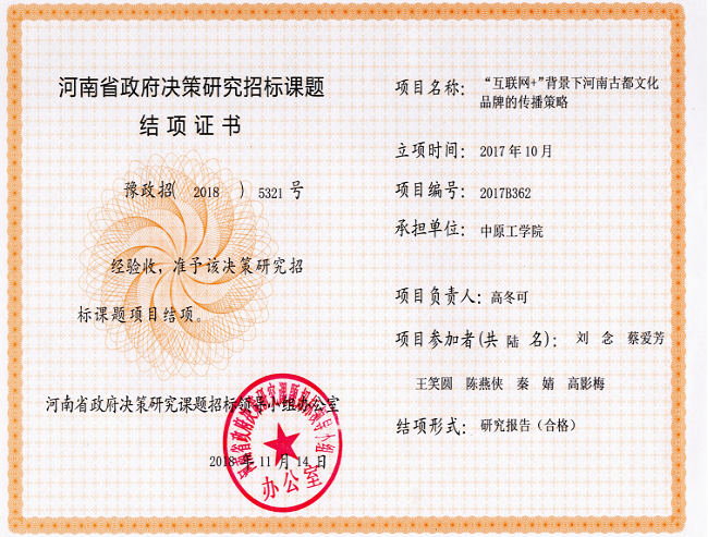 4.河南省政府决策研究招标课题结项证书