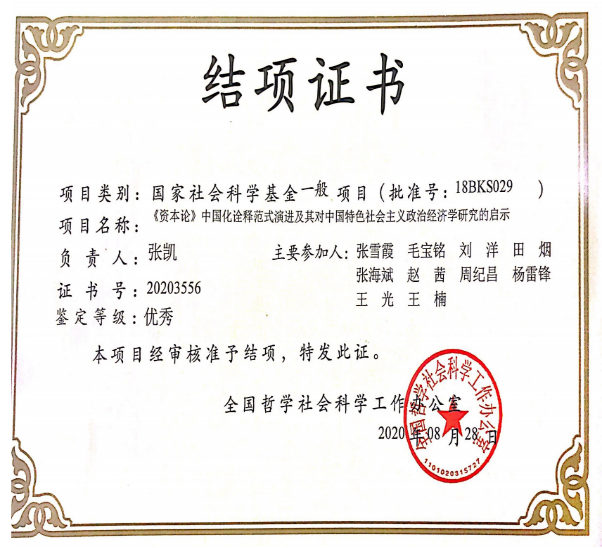 1.国家社会科学基金一般项目结项证书