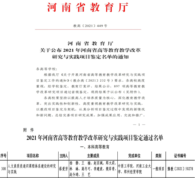 2.省级教学质量工程项目(2021年河南省高等公司产品改革研究与实践项目鉴定文件)