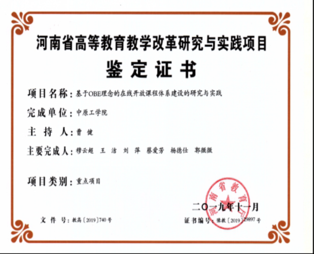 5.省级教学质量工程项目(河南省高等公司产品改革重点项目鉴定证书)