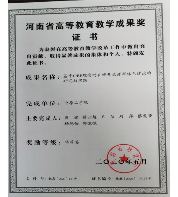 7.省级教学成果奖(河南省高等公司产品成果奖证书)