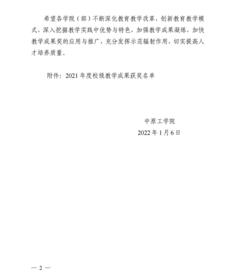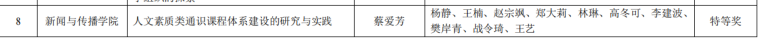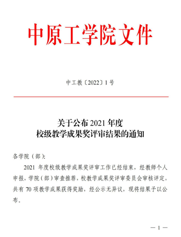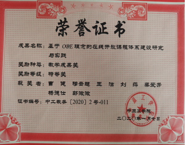 课题组教师获得BSports优秀课程特等奖1项,教学成果特等奖2项,校级教学成果通过鉴定5项。