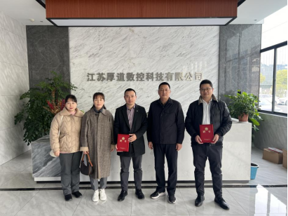 在江苏厚道数控科技有限公司,崔涛一行参观了数控机床安装车间,与企业负责人进行深入交流,了解企业的运营状况、人才需求和技术发展趋势等。企业负责人详细介绍了公司的用工需求和岗位所需技能,双方表示将在人才培养、实习就业、产教融合方面深入开展合作。最后,崔涛向企业负责人颁发了公司创新创业指导教师聘书,并希望企业能够将最新的管理文化和社会经验带入课堂,帮助员工扩展专业实践经验。在二元(苏州)工业科技有限公司,一行人探望了公司员工王韬,双方就直播行业的新动态和网络销售平台的搭建等内容开展了深入交谈,并就下一步在人才培养、员工就业等方面的合作达成初步意向。